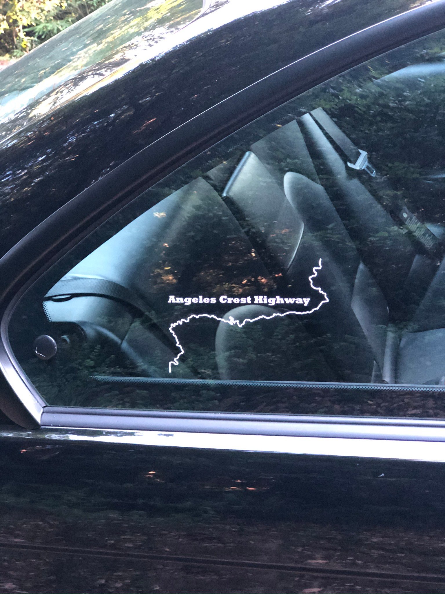 The sticker begins at the bottom at the Shell gas station in La Canada and ends at Newcombs Ranch.